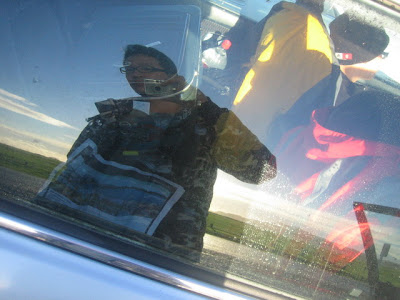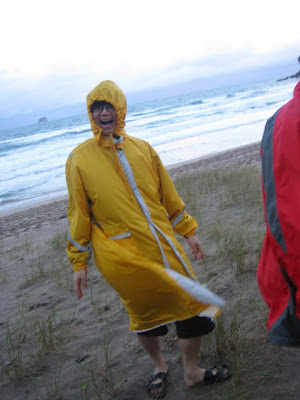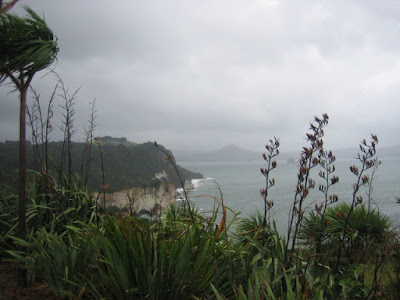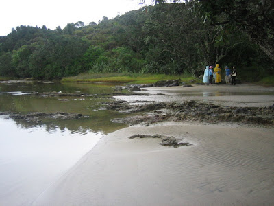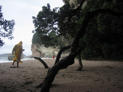 從Tauranga開車到Coromandal大概花了1百多公里吧~可是更扯的是我還開了生平最惡劣的山路從Coromandal一直開到Hot Water Beach,最棒的是,Hot Water Beach那裡天氣惡劣,風雨交加,跟台灣颱風來襲時差不了多少,而所謂的Hot Water Beach是一個深埋在海灘的火山泉水,所以想體認真正熱水灘是要跑到礁岩前的海灘坐下來挖個洞然後就會有天然的溫泉了喔!!