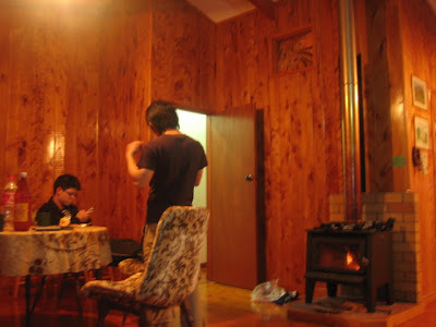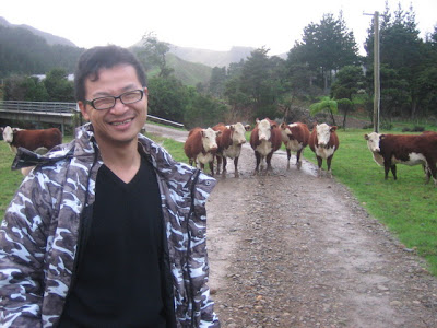 然後再殺到Coromandal山區上Colville裡的一間農場BBH裡入住,爐火溫暖,老夫婦親切且貼心地安排我們住在一整間小木屋,我家旁邊真的有牛!!而且還一大群COw!!真想跟一群牛合照,可是他們看起來好可怕,當他們靜靜地看著我時我感覺到了殺氣,呵呵~,這是一間讓我很希望繼續住下來的農場。