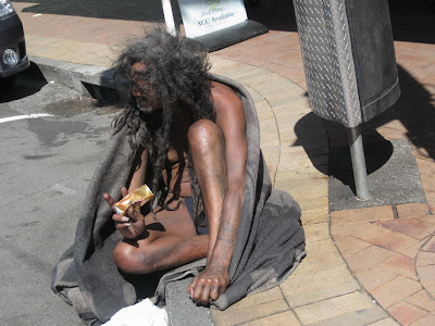 這個流浪漢太有骨氣了,因為許多的人不上街頭行乞的原因,只是因為他們社會福利機構實在太好了,你沒有工作社福會給你每個禮拜245元來當作你所需的津貼,當然如果有小孩另計,而如果有急需的醫療(就是不治療你就會死)那這筆錢是政府出,而且,他們號稱所有醫療都是免費的(當然只給擁有紐西蘭公民),那是指你要排隊看病,所以排隊排到2年後算還蠻常見的事情。回歸正題,這位流浪漢他拒絕任何的社會幫助,全市民都知道有這位人物的存在。
